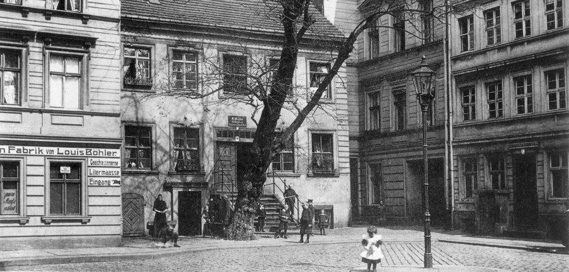 З кінця XIII століття євреї постійно проживали в Берліні. “Jüdenhof” — комплекс із дванадцяти будинків, згрупованих навколо внутрішнього двору — слугував єврейській громаді міста, як ізольоване ззовні місце для спільного життя. Як у захищених євреїв маркграфства Бранденбурга, які були зацікавлені лише в економічній діяльності та пов’язаних з нею податкових надходженнях, їхнє право на поселення було пов’язане з їхньою власністю. Більша єврейська громада була в сусідньому Шпандау. Тут було кладовище під назвою “Judenkiewer”, де берлінські євреї спочатку ховали своїх мертвих.